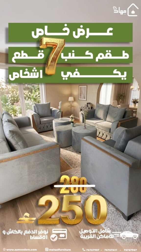 طقم كنب أنيق مكوّن من (7) قطع بتصميم عصري يضيف لمسة فخامة لصالة منزلك.